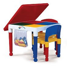 - The 2-in-1 Plastic Construction Table Set features bright primary colors to stimulate active imaginations and creative play. The set Includes 2 chairs, removable activity top, storage bag and FREE 100 starter block set. Sturdy plastic construction. Construction base plate fits leading building block systems. LEGO-Compatible!